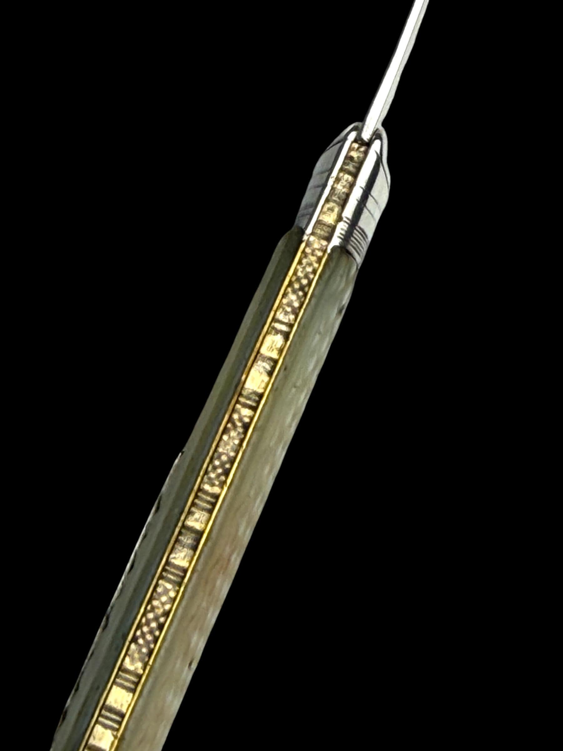 The blade has various minor blemishes and a minor bend at the end. The knife has been discounted accordingly. Overall, it is an impressive piece.