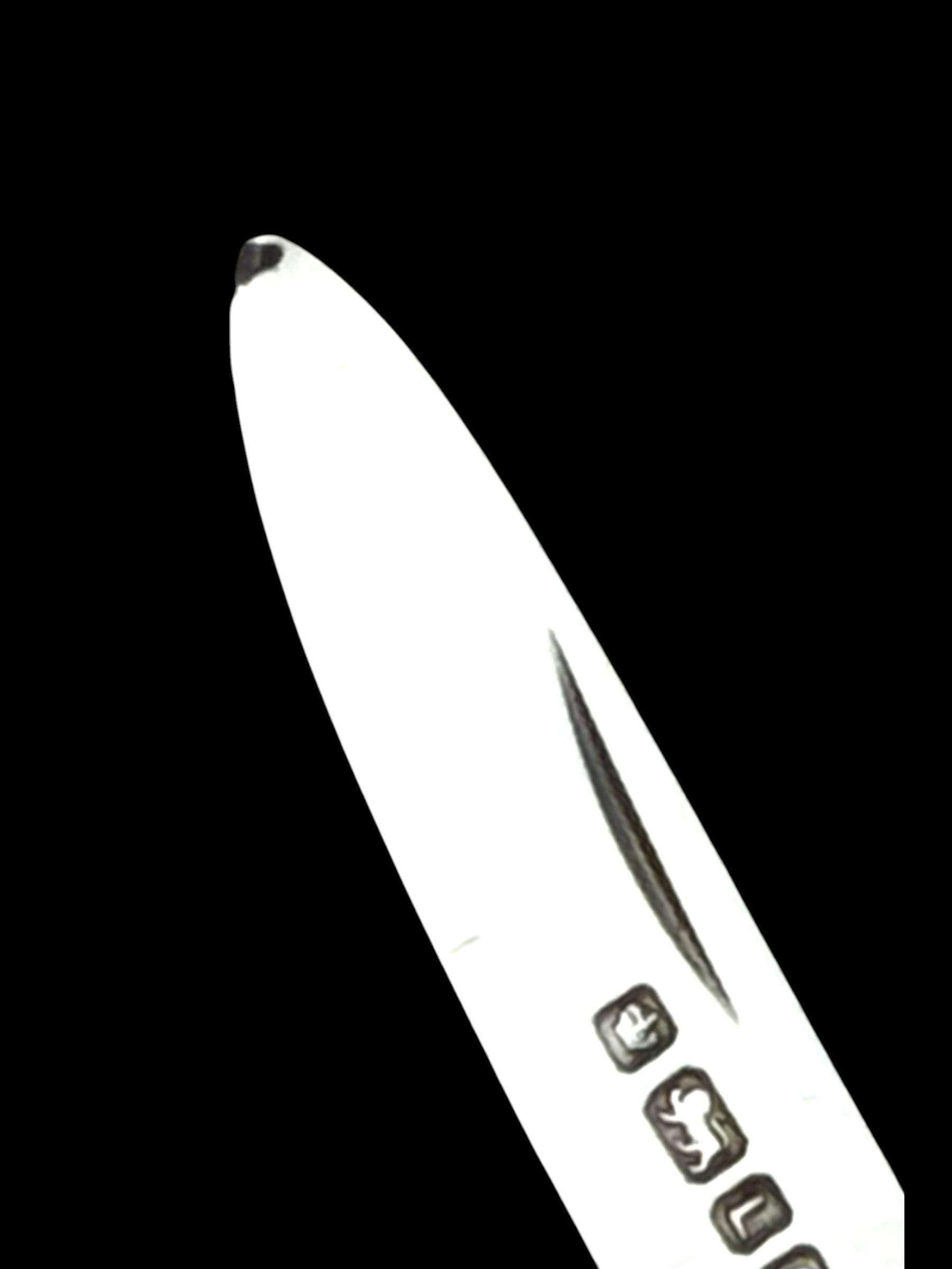 The hallmarks are verll well-defined which is another nice feature. The hallmarks confirm it is genuine sterling silver; not silver-plate or stainless steel which are obviously significantly cheaper. The portrait hallmarks is of Queen Victoria. This was to confirm that duty on the silver had been paid to the Crown and also dates the knife from the Victorian era.
