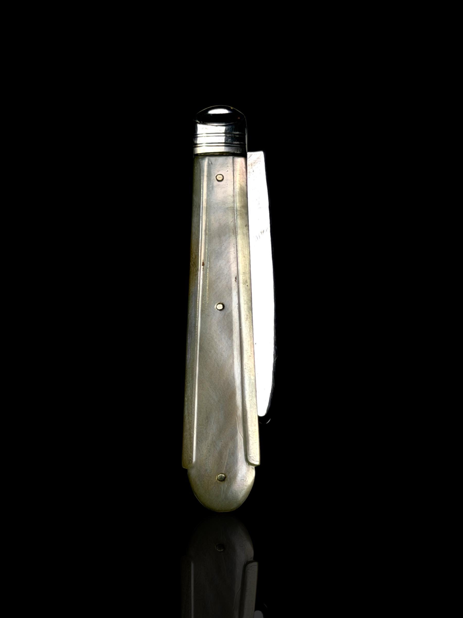 The hand-carved handle is high quality mother of pearl carved from Australian pearl shell which were exported to England from the 1800s.