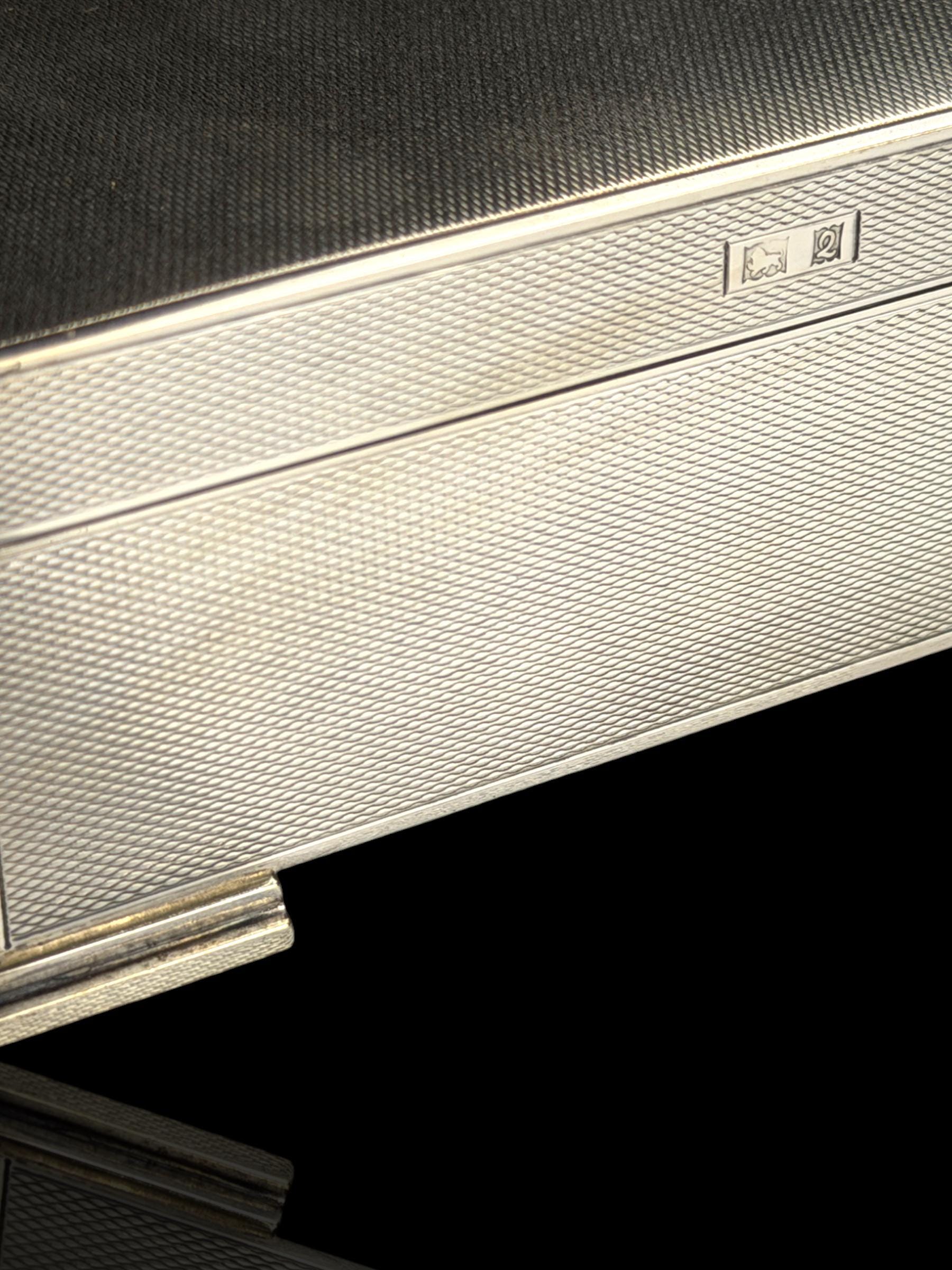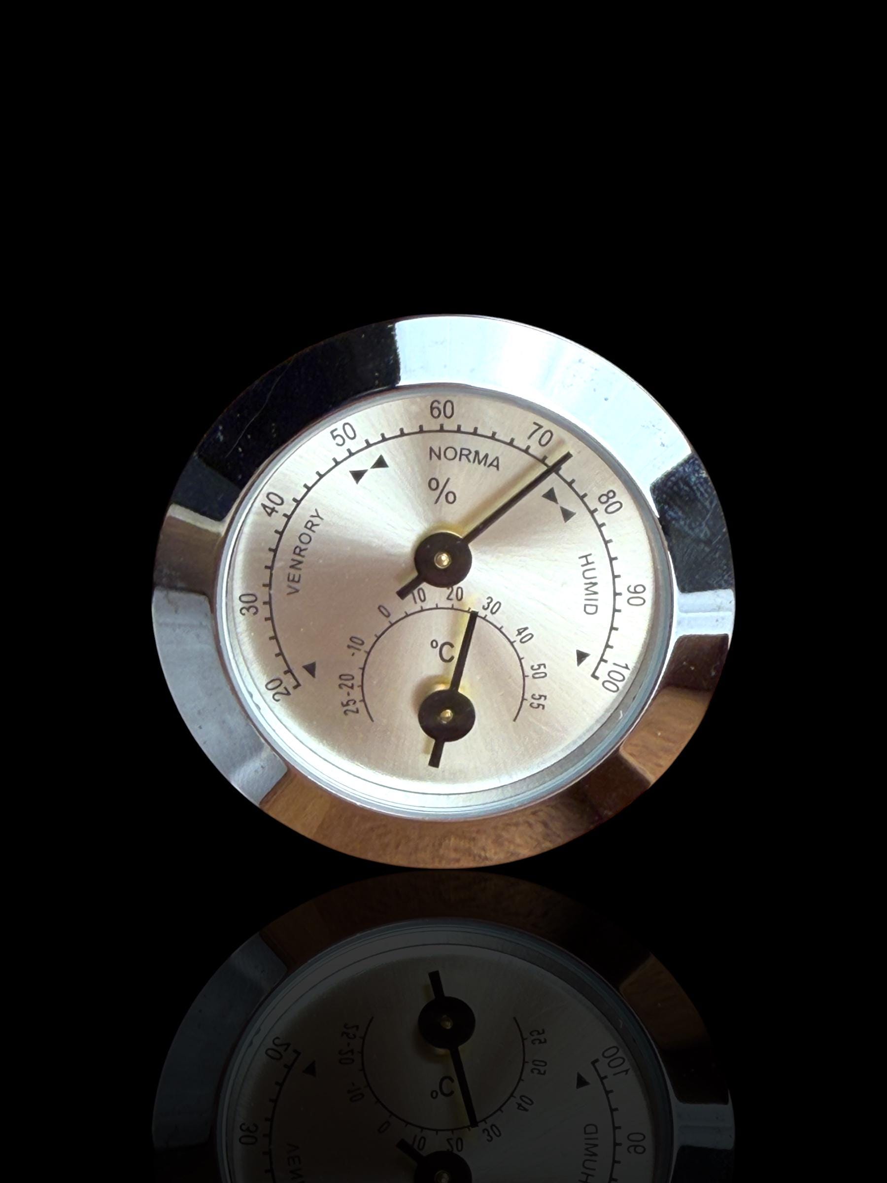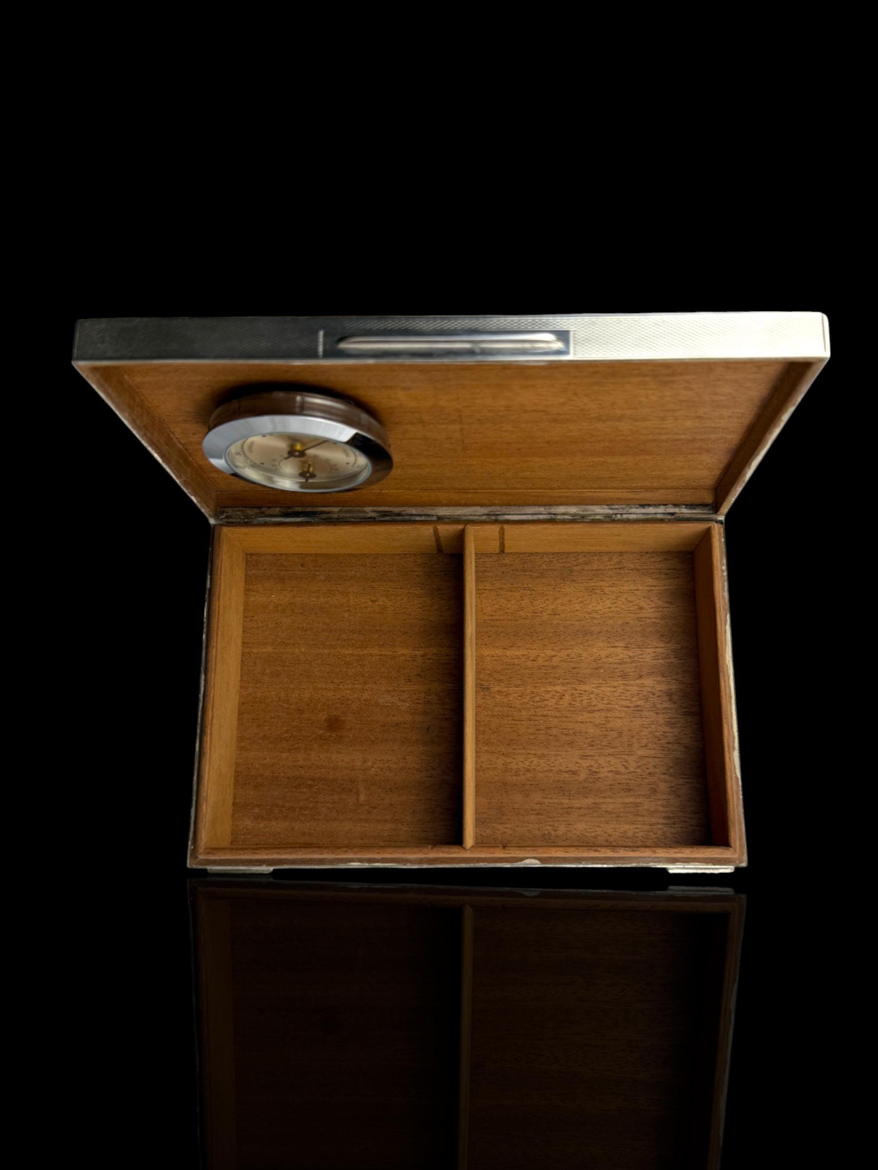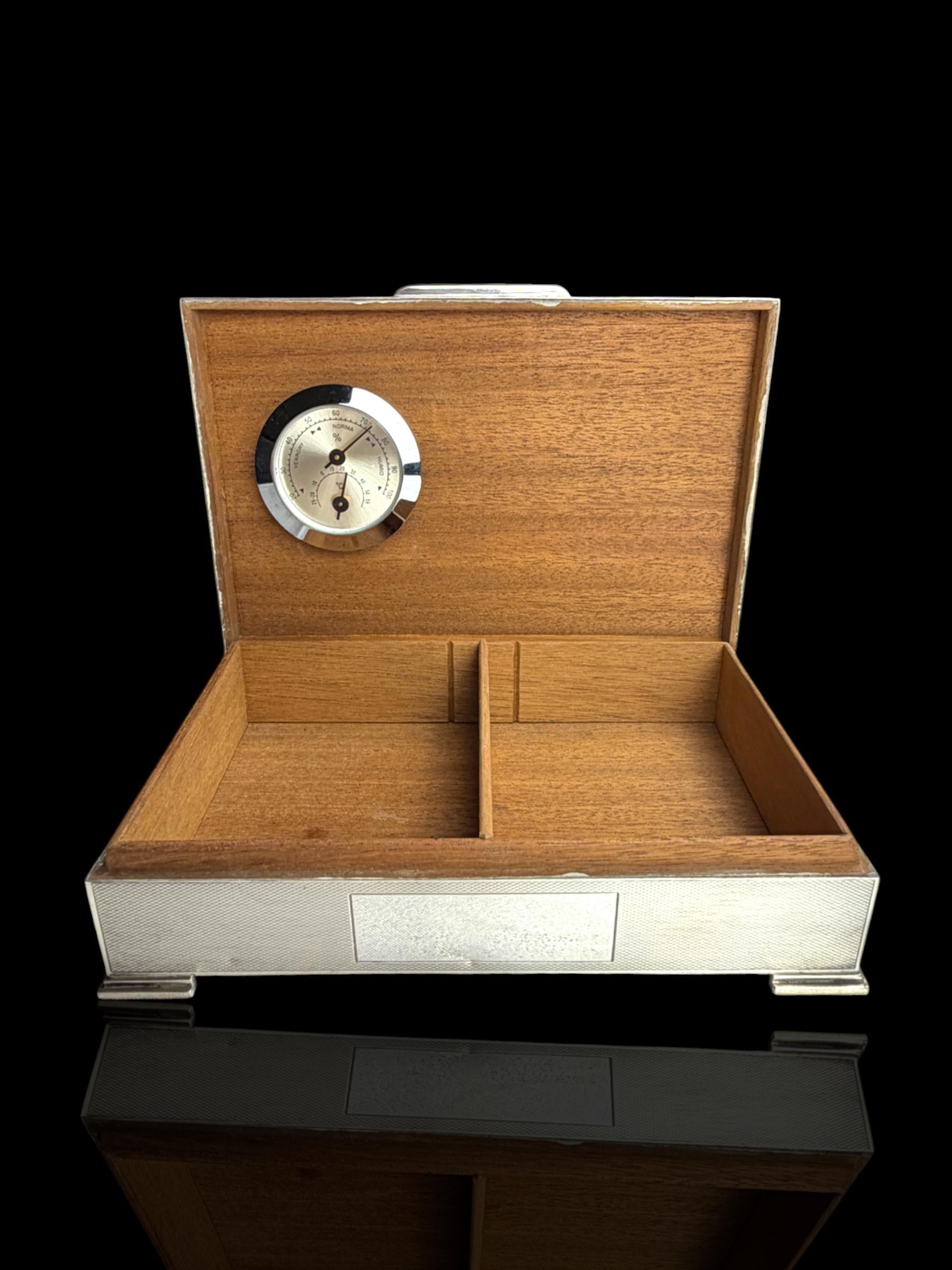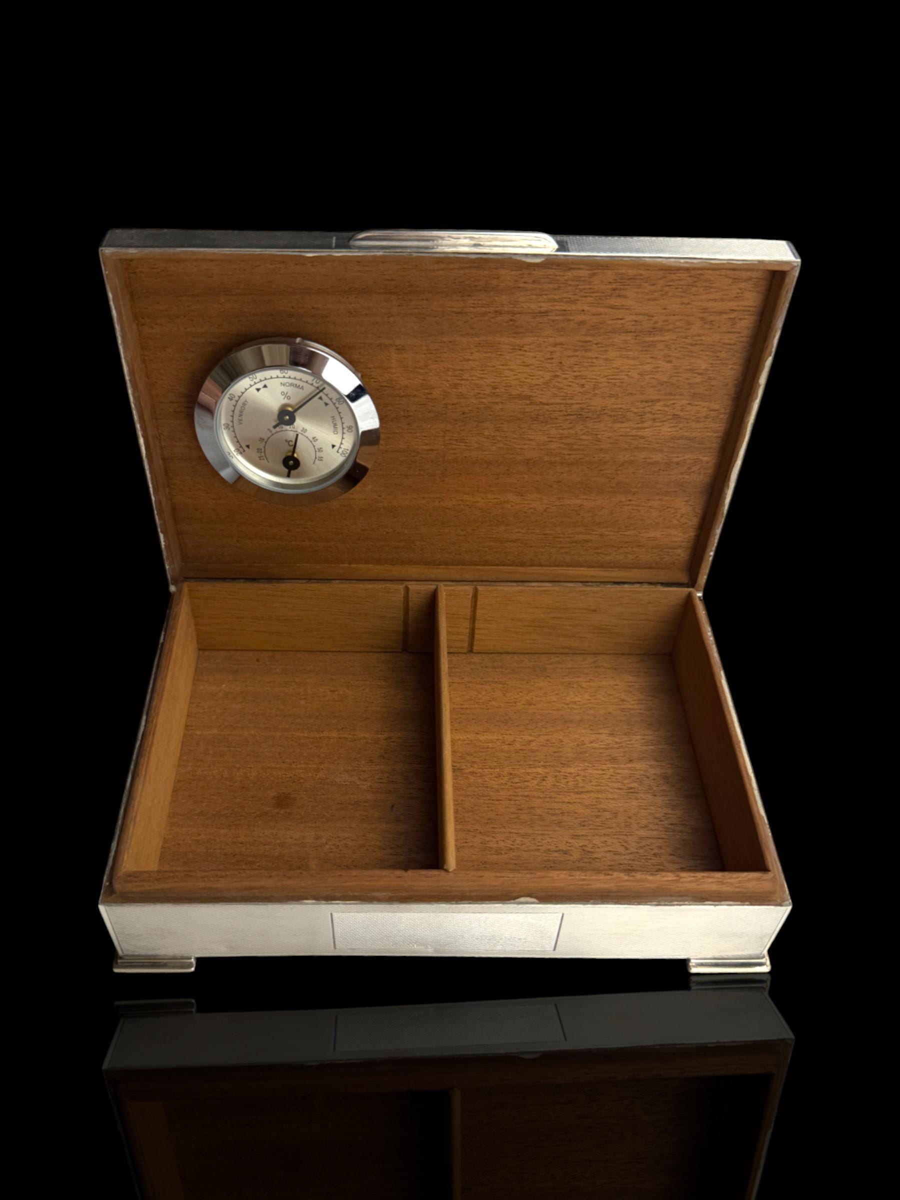 Fitted with a modern 50mm hygrometer guage. The lid measures 17cm x 11cm.