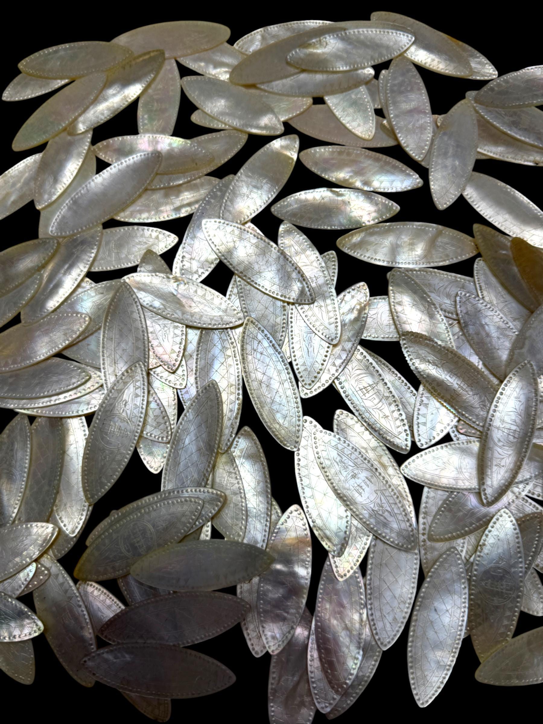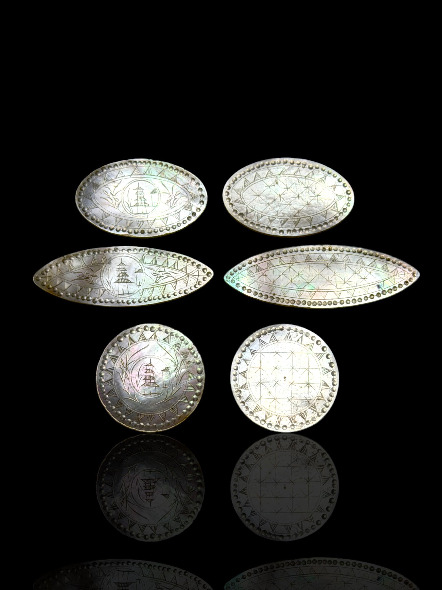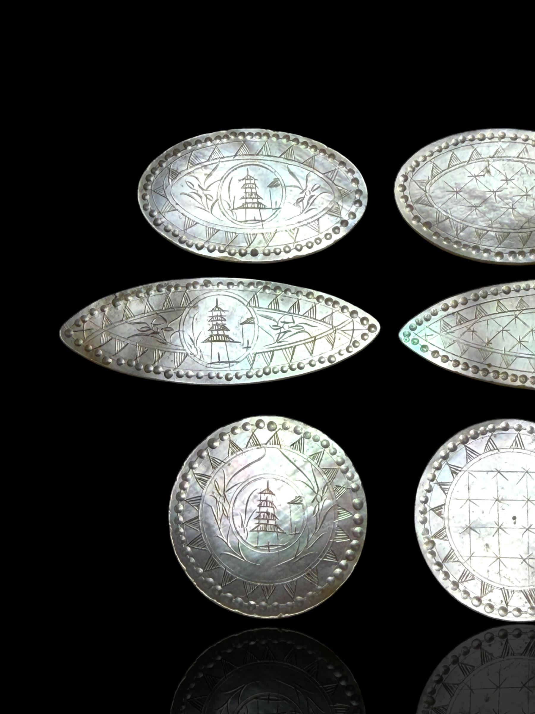 Highly sought after by collectors of antique gaming pieces, decorative arts, and mother-of-pearl objects. These counters capture the elegance of Regency and Victorian leisure culture.