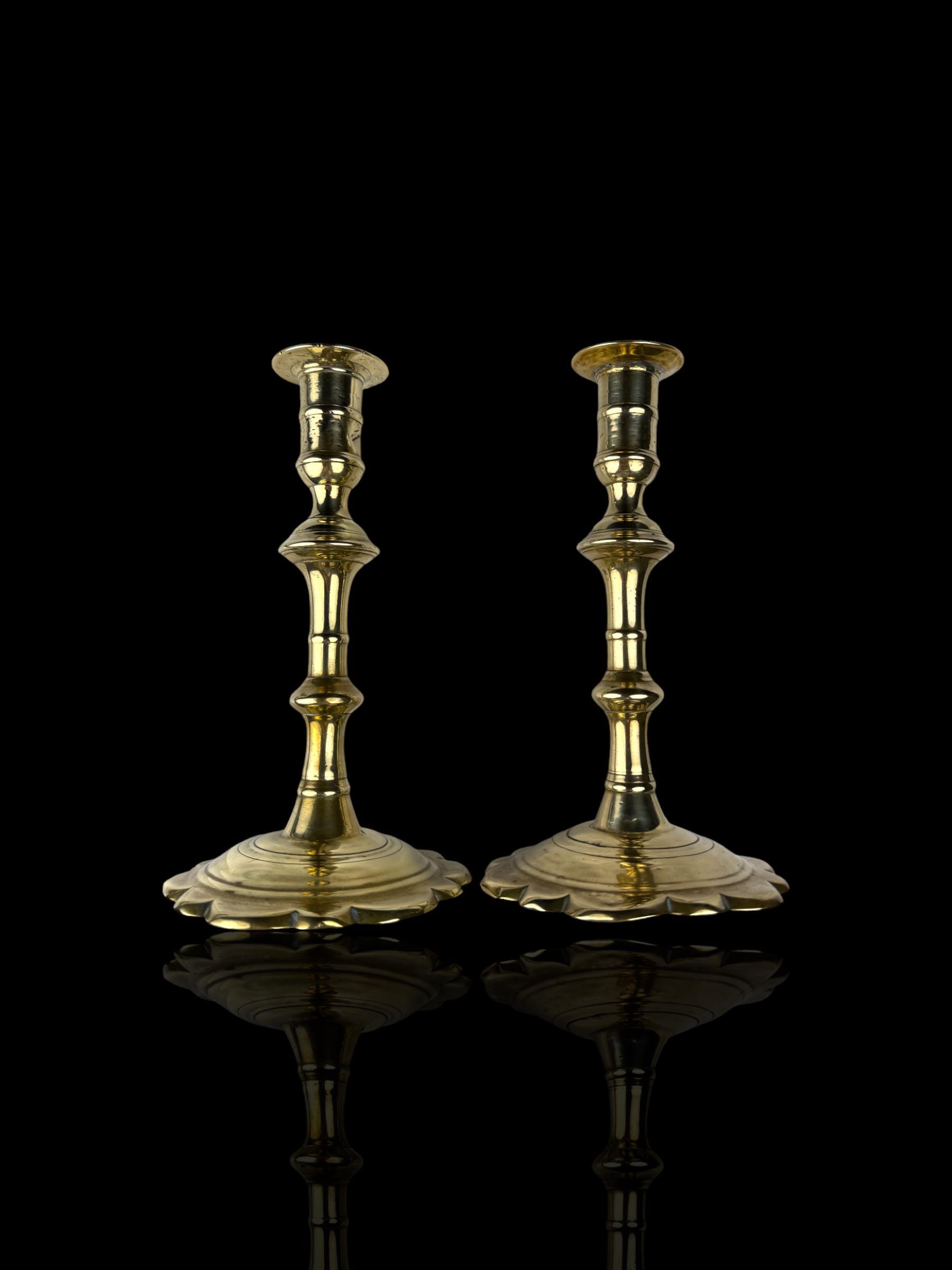 Crafted in solid brass and displaying the graceful proportions typical of mid-18th-century English design, these candlesticks are both functional décor pieces and collectible antiques.