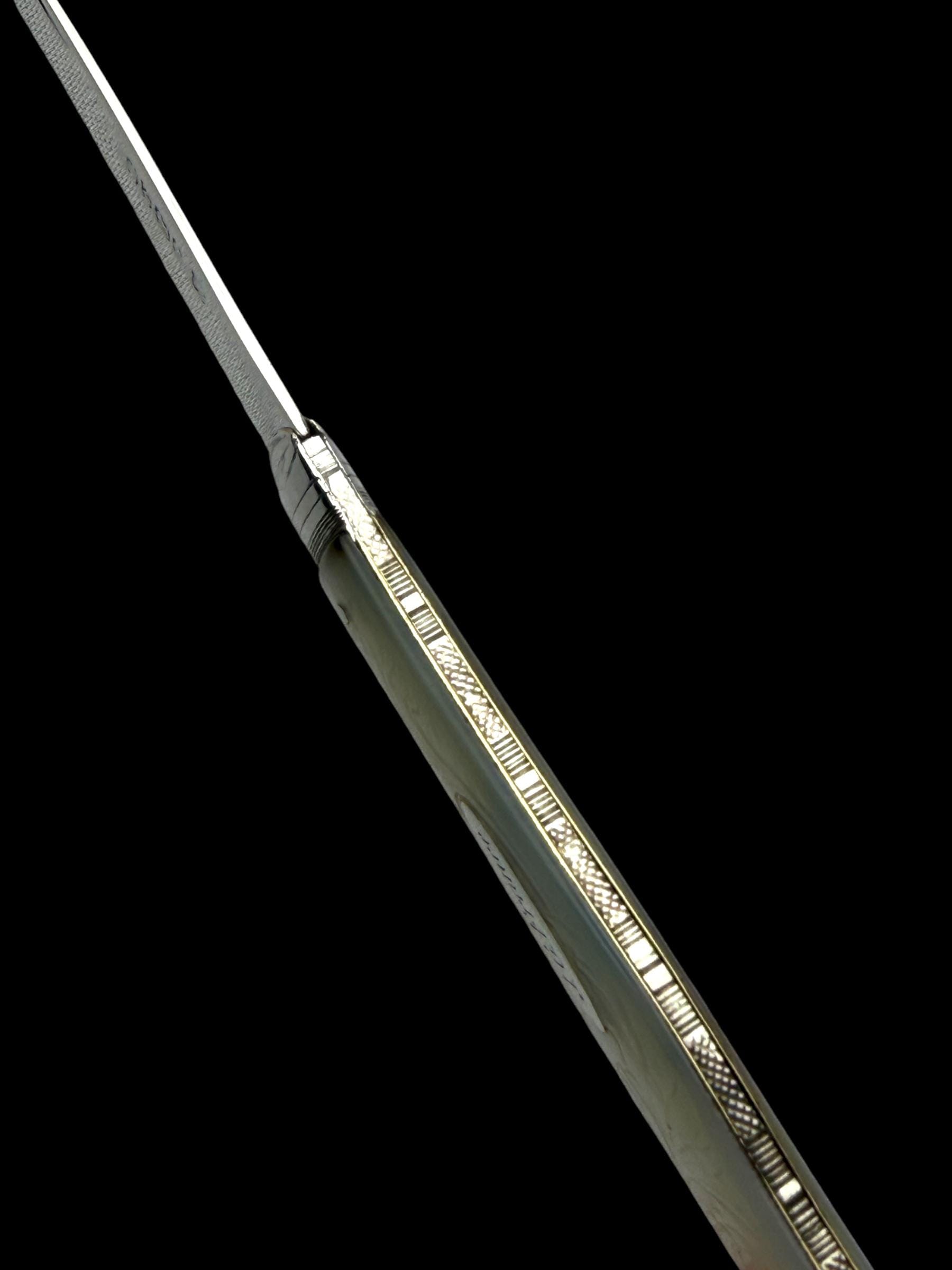 The action is nice and tight and the blade straight with the handle when open and flush when closed. The blade is in very good condition and the piece is 145mm in length when open which is on the large side for such knives.