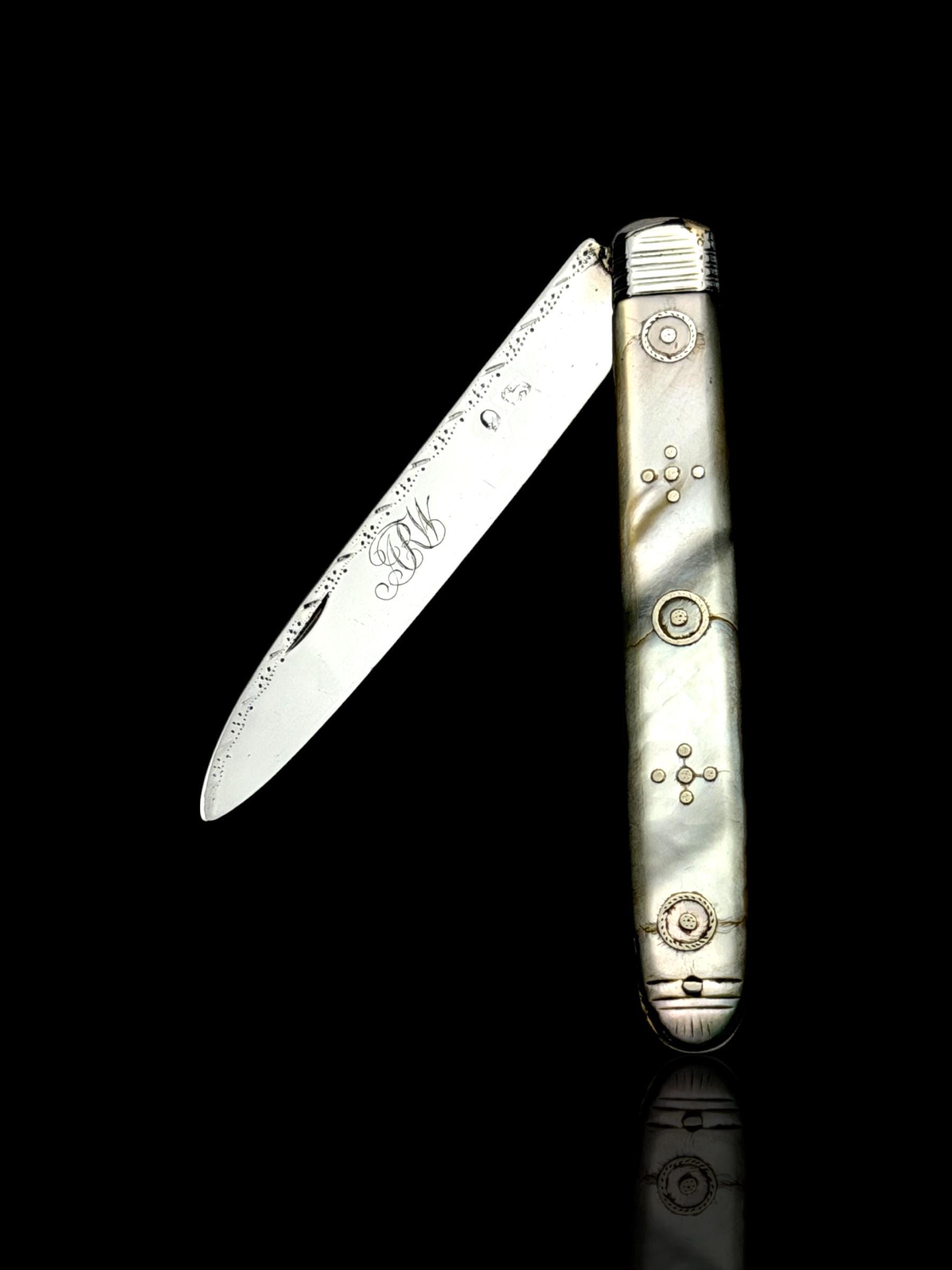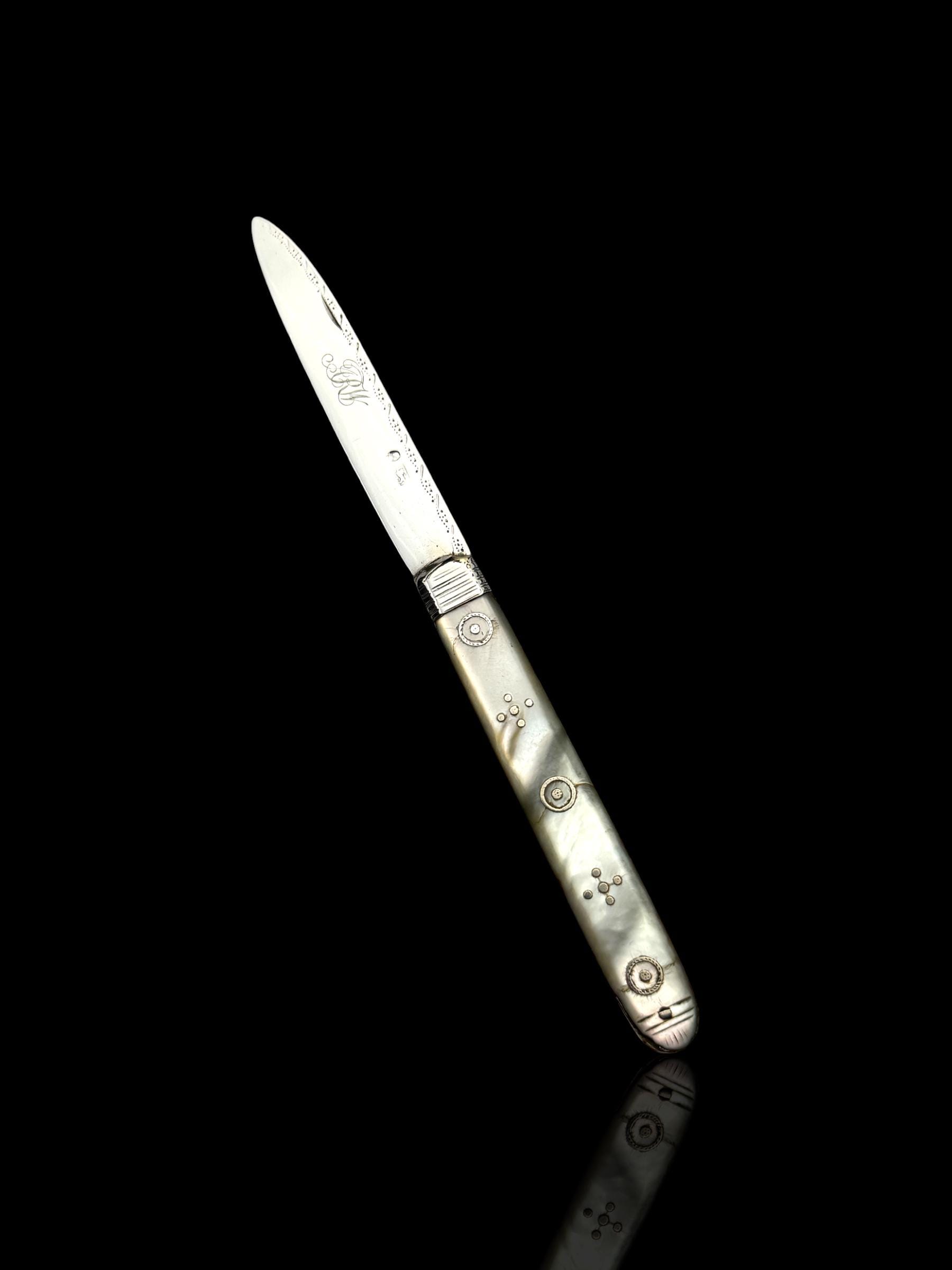 The oldest pocket knife available. The portrait hallmarks is of King George III. Unfortunately, the hallmarks have partically rubbed which makes the origin and maker of the knife unknown. However, the design is typcial of those in fashion in the late 1700s so is very likely from that part of his reign.