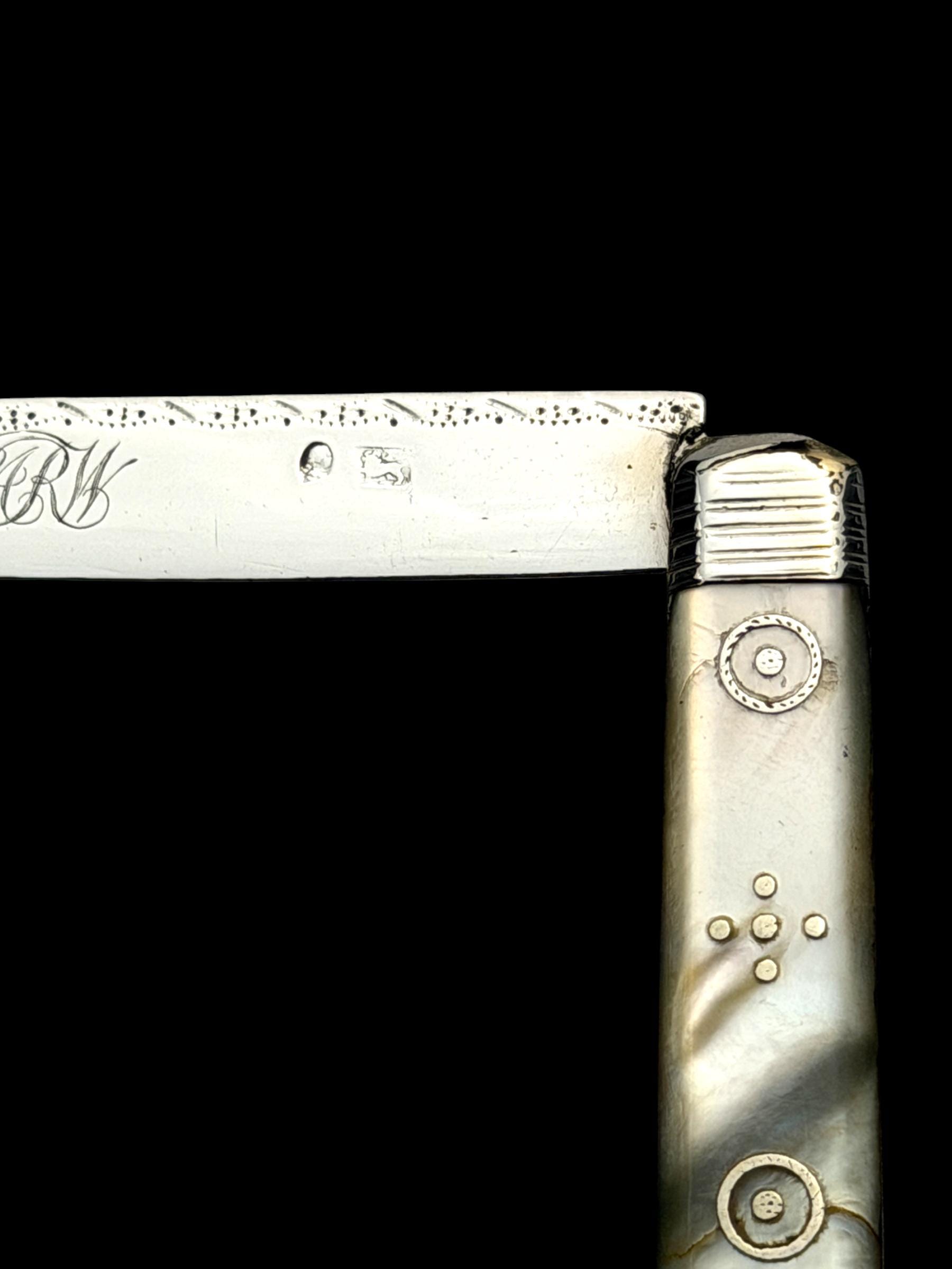 The blade is solid silver, which is softer than stainless steel, it cannot be used on hard objects. Such pocket knives would often be carried to cut and peel fruit which is why they are sometime called fruit knives.