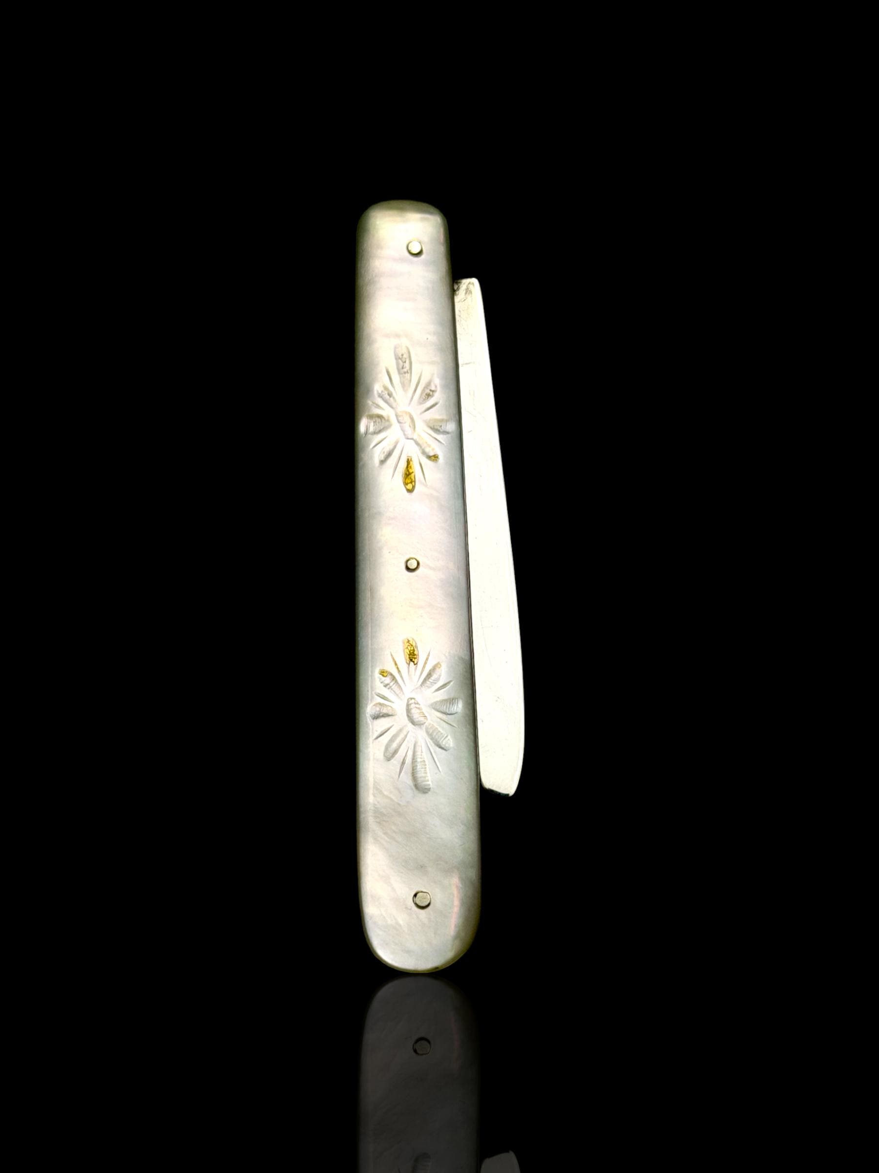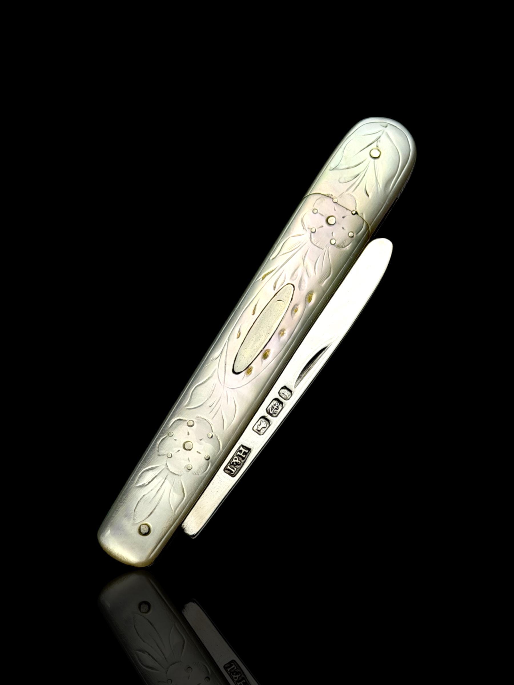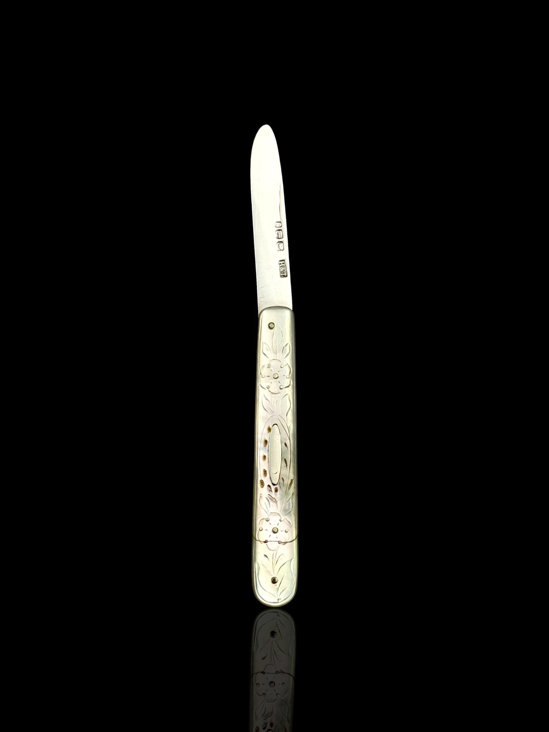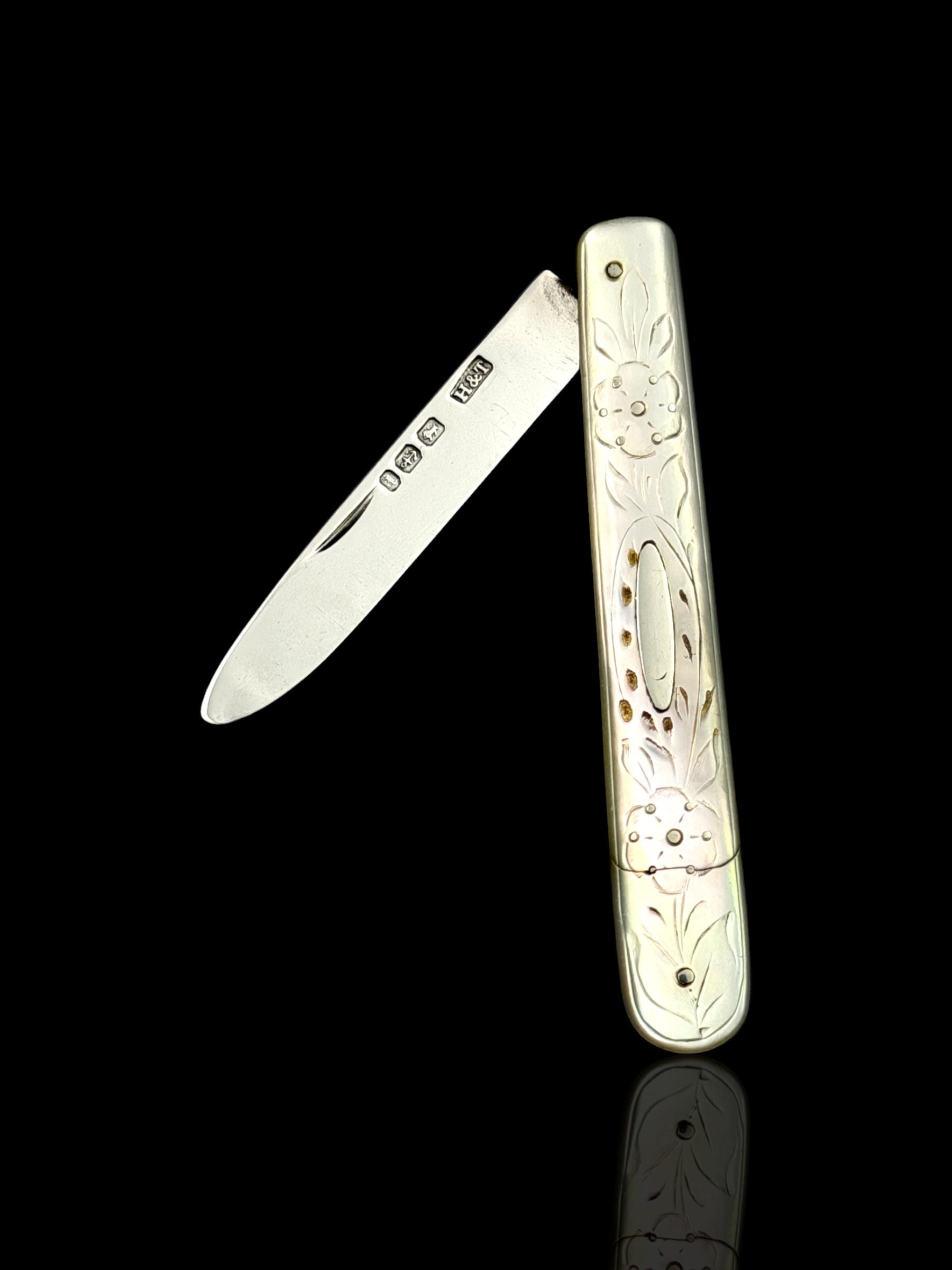 The hallmarks are well-defined and confirm its date, maker and that it is genuine sterling silver; not silver-plate or stainless steel which are obviously significantly cheaper. As the blade is solid silver, which is softer than stainless steel, it cannot be used on hard objects. Such pocket knives would often be carried to cut and peel fruit which is why they are sometime called fruit knives.
