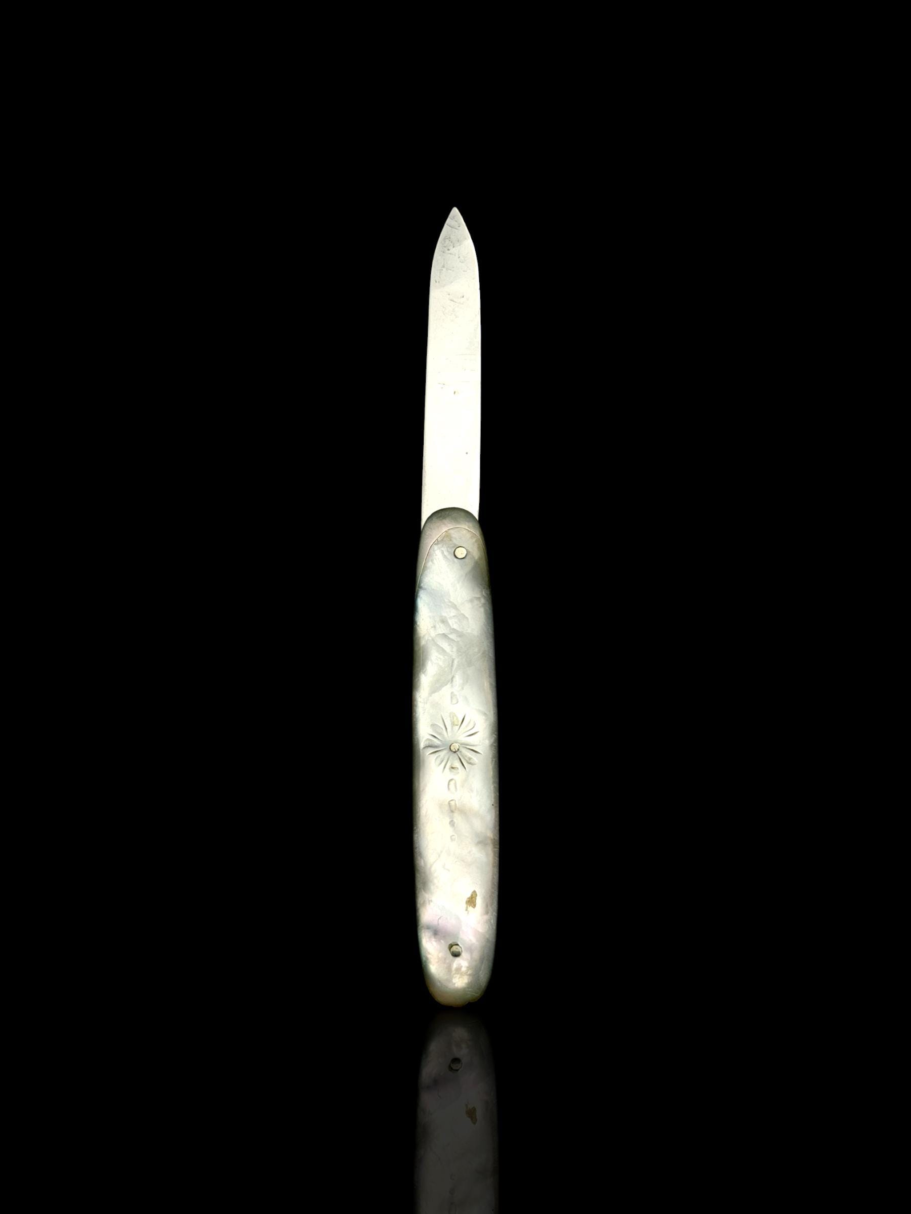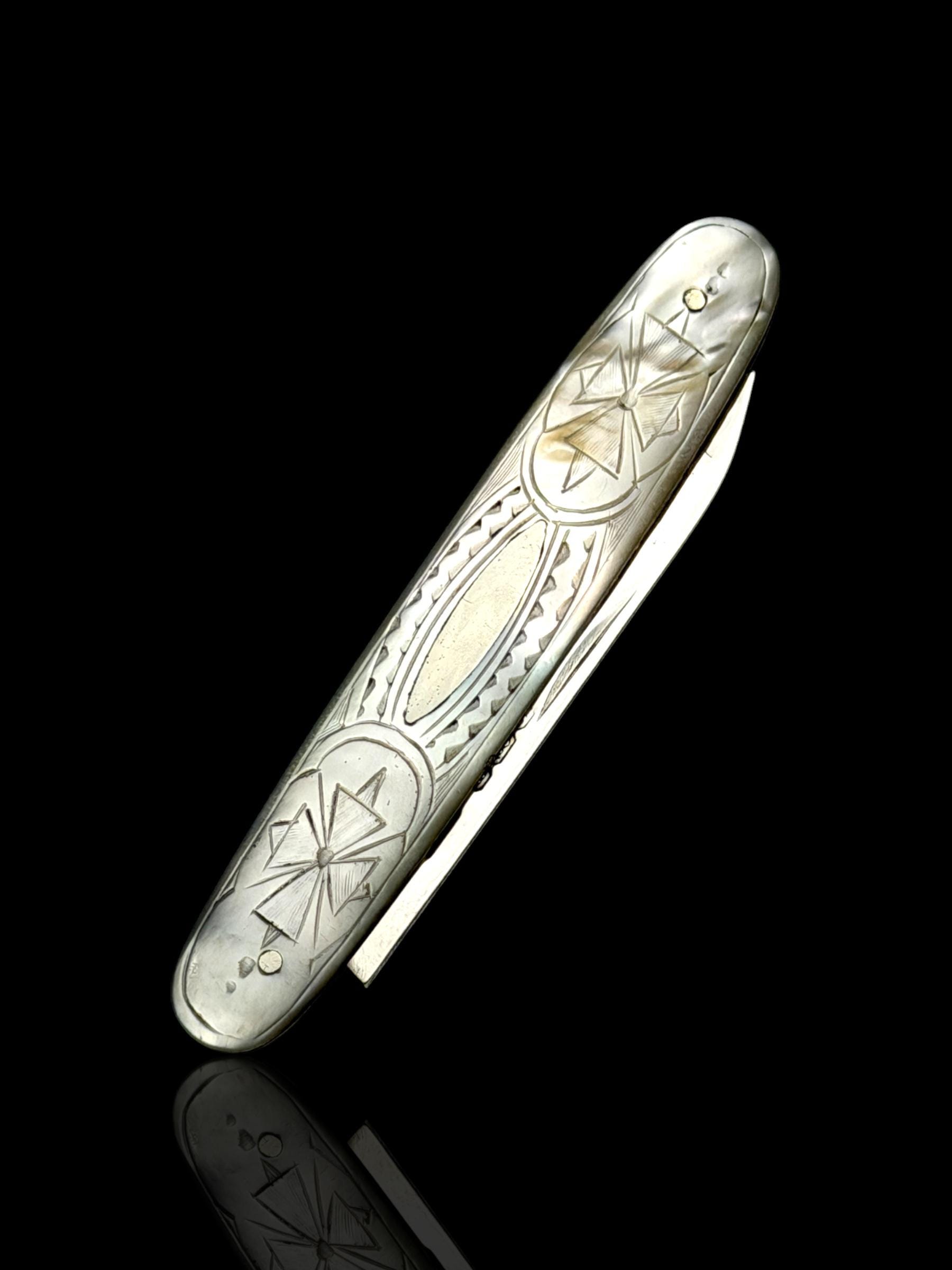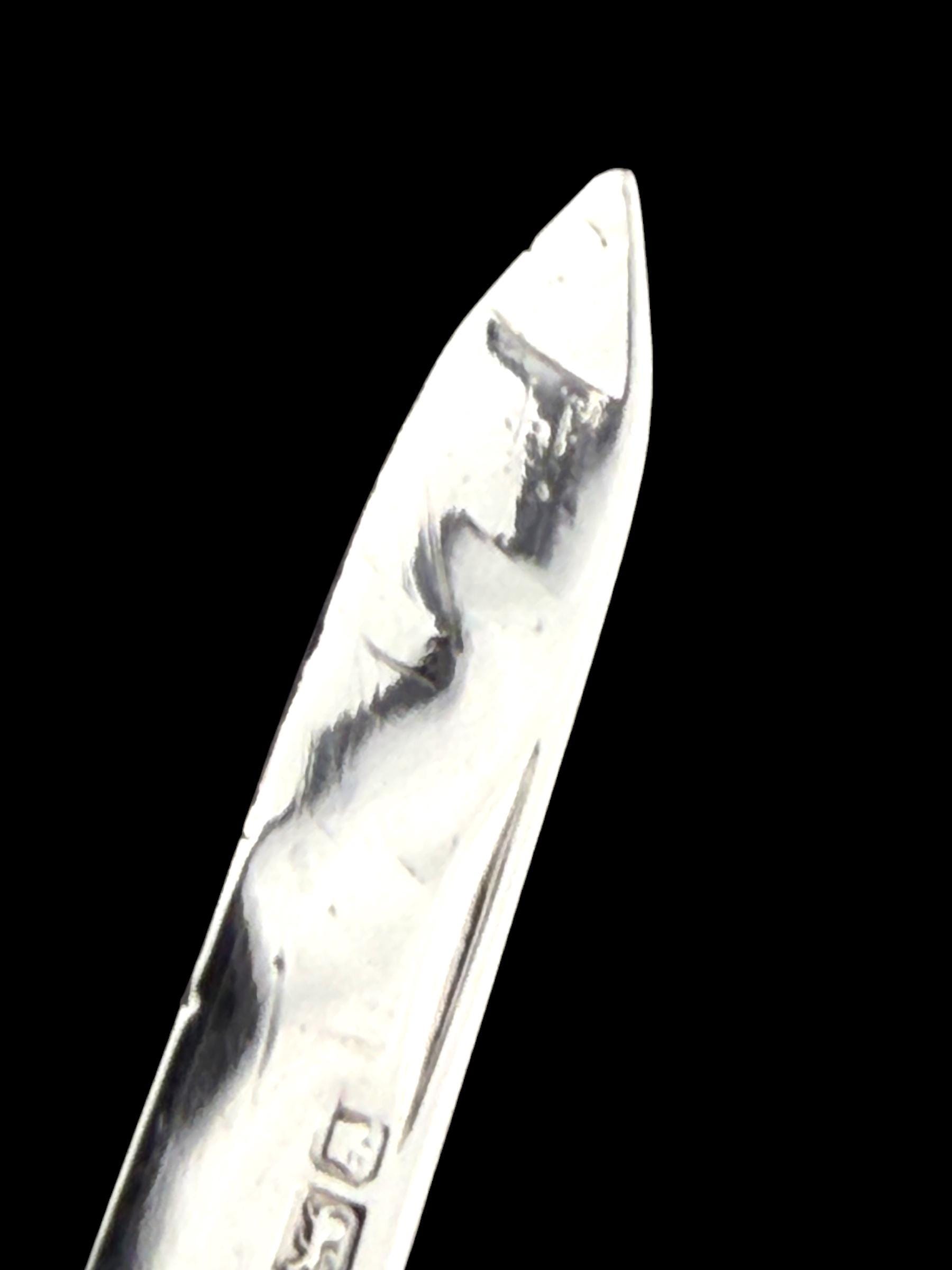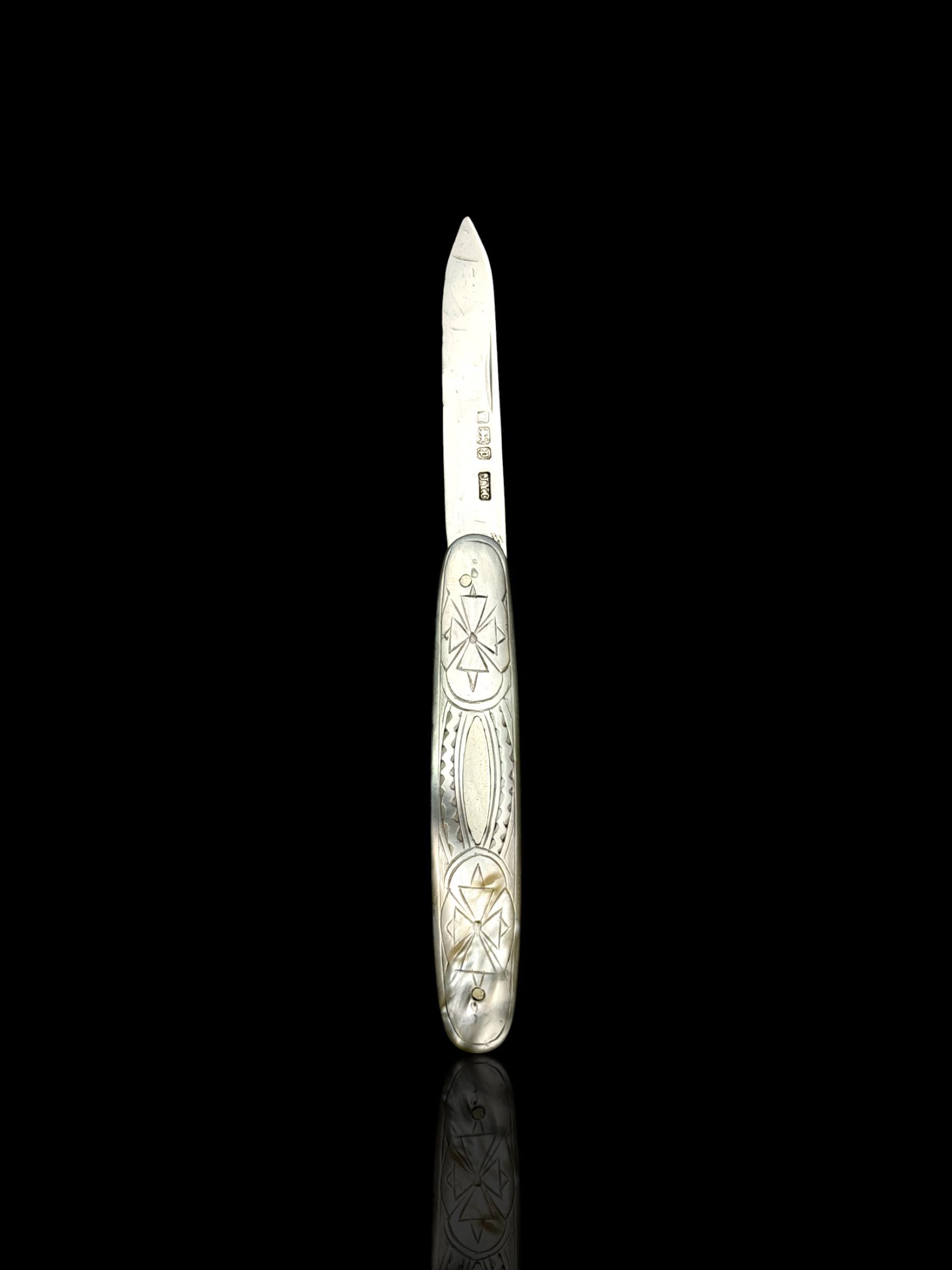 The hallmarks are well-defined and confirm its date, maker and that it is genuine sterling silver; not silver-plate or stainless steel which are obviously significantly cheaper. As the blade is solid silver, which is softer than stainless steel, it cannot be used on hard objects. Such pocket knives would often be carried to cut and peel fruit which is why they are sometime called fruit knives.