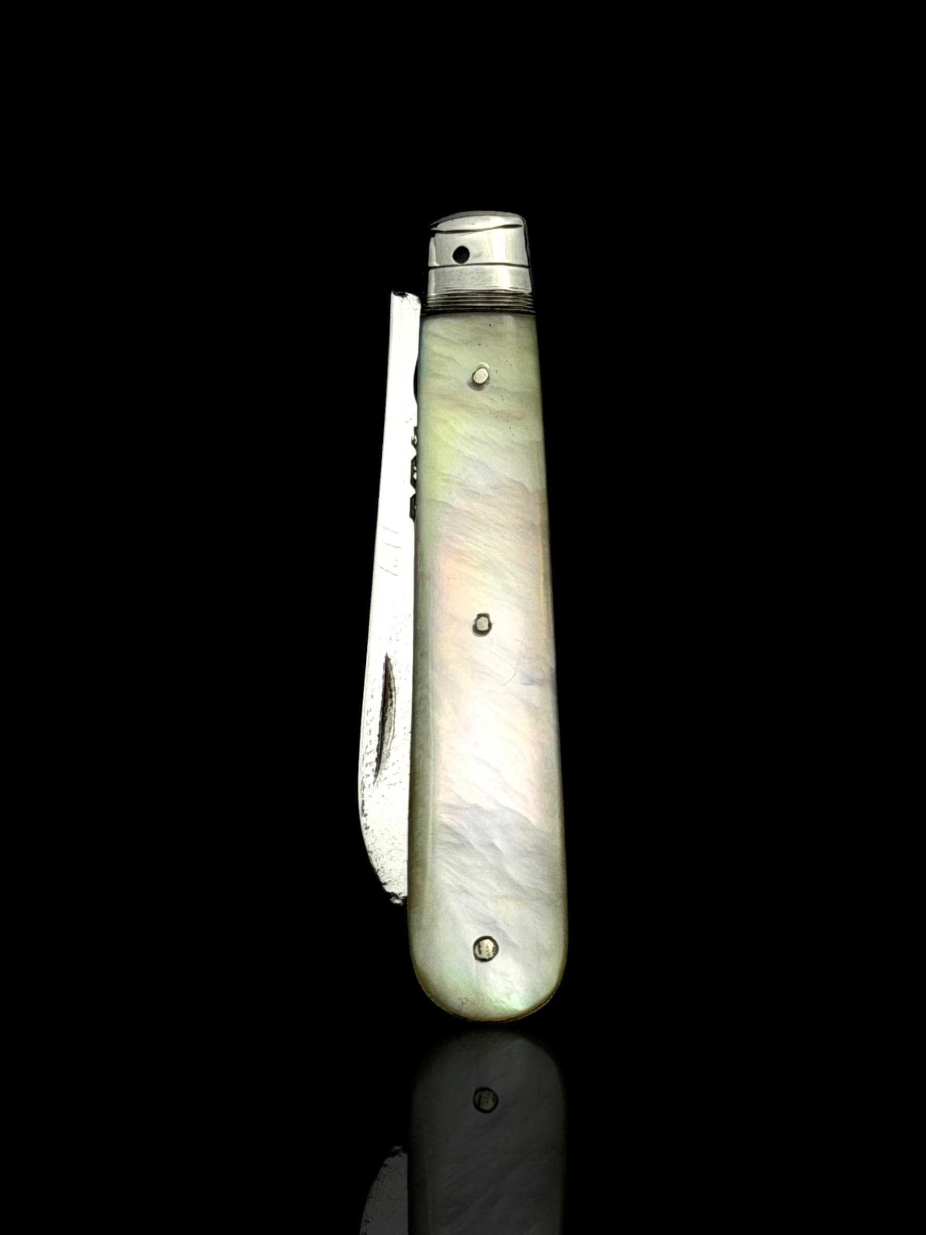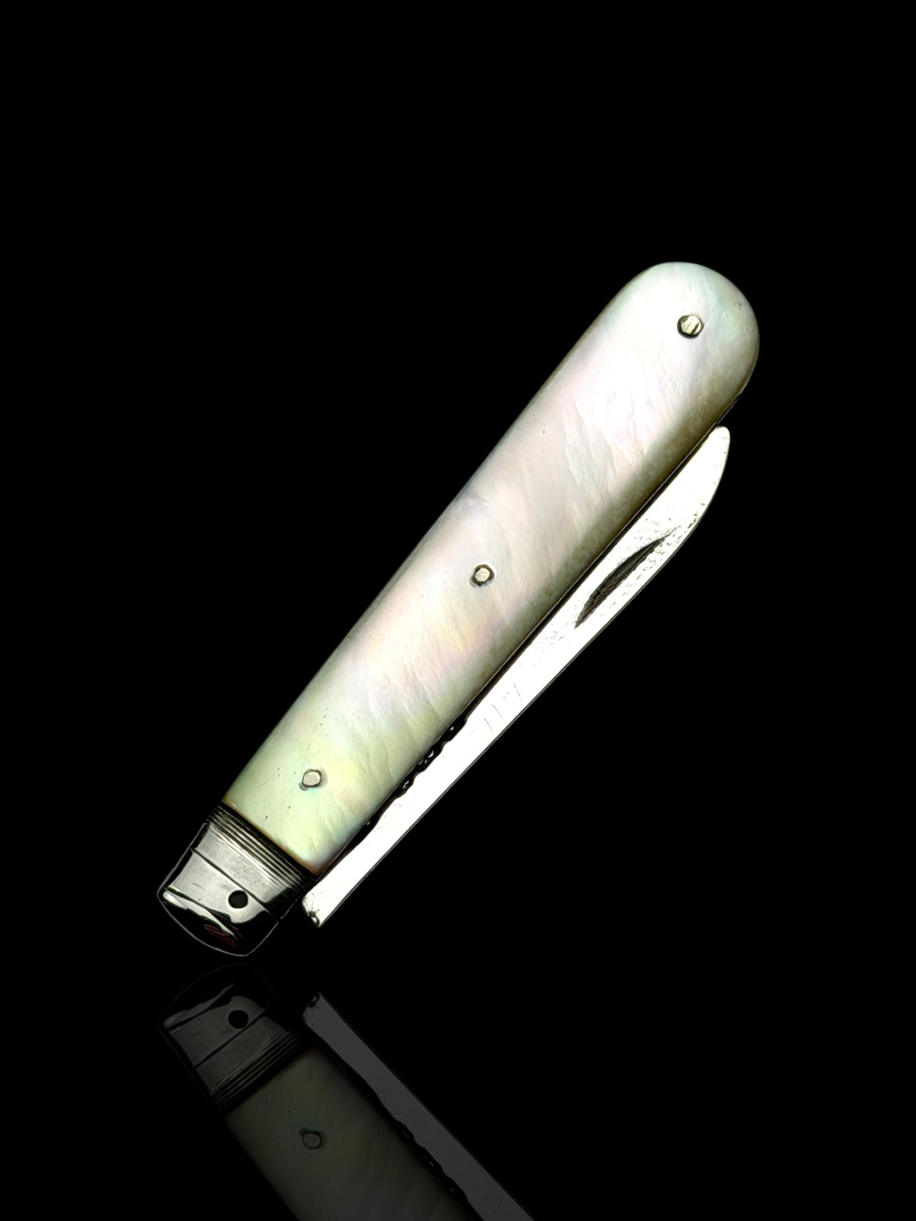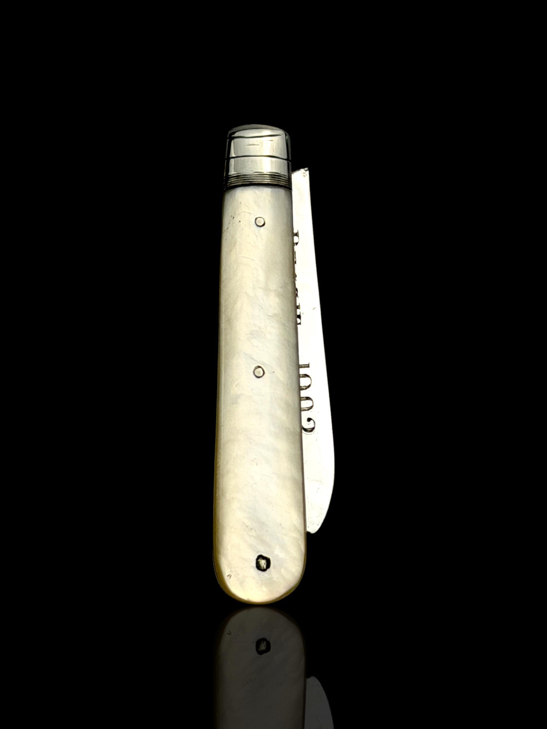 The hallmarks are well-defined and confirm its date, maker and that it is genuine sterling silver; not silver-plate or stainless steel which are obviously significantly cheaper. As the blade is solid silver, which is softer than stainless steel, it cannot be used on hard objects. Such pocket knives would often be carried to cut and peel fruit which is why they are sometime called fruit knives.
