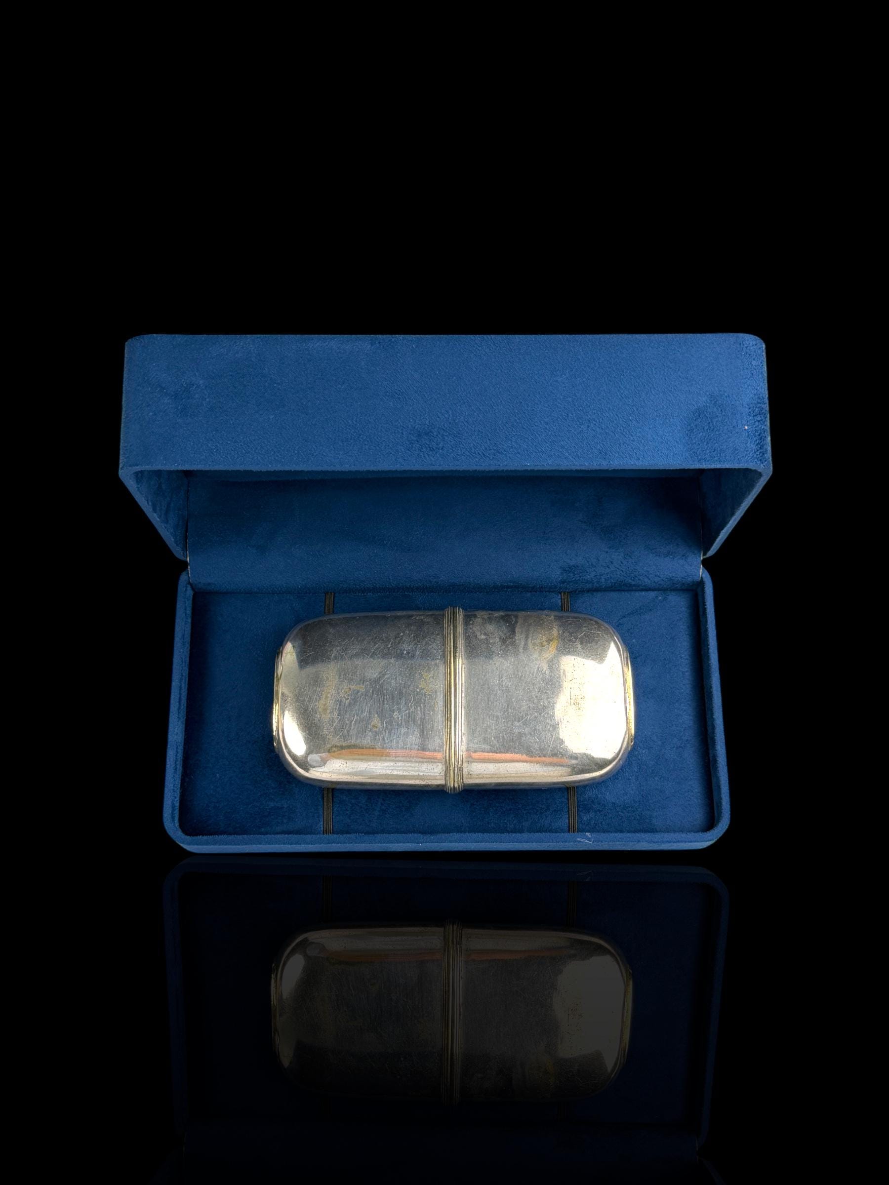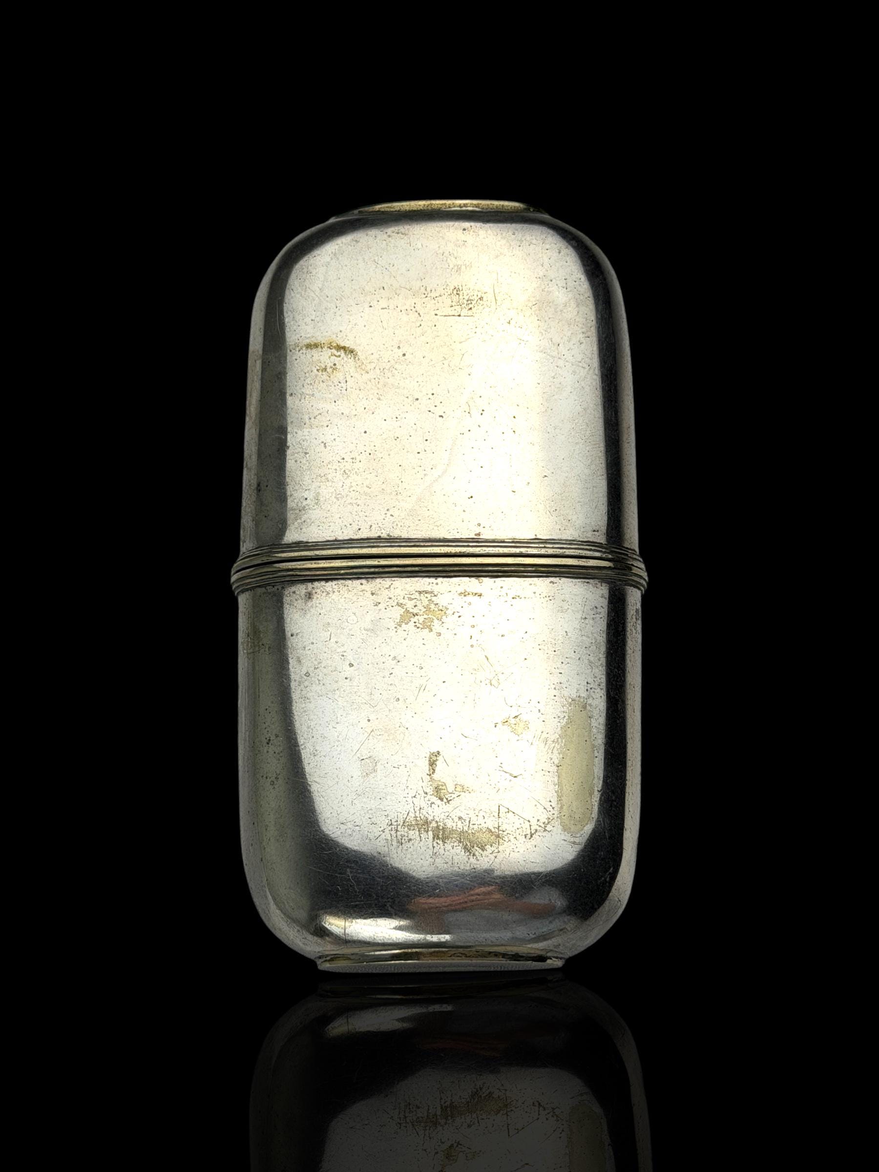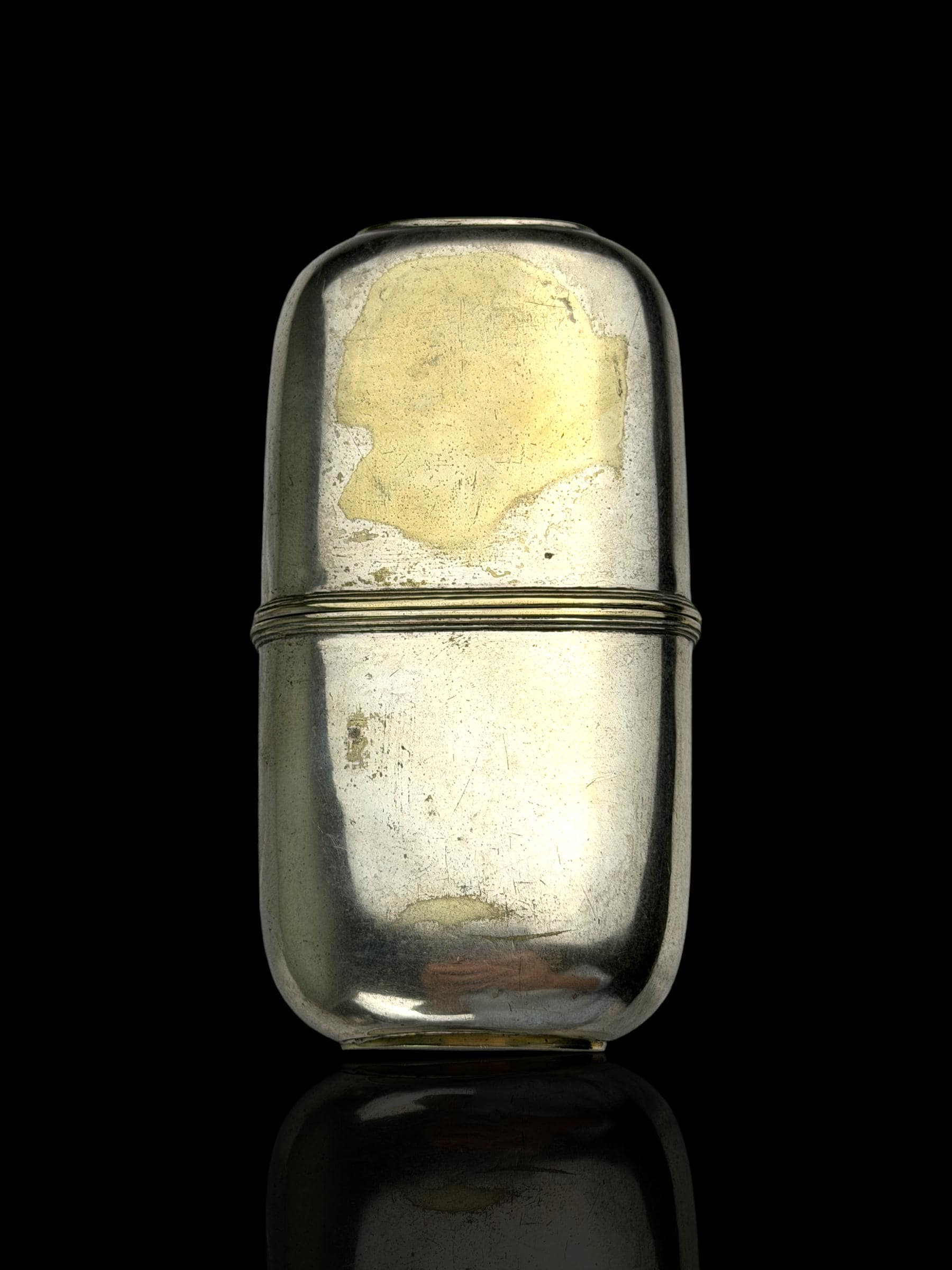 Every man loves a hip flask. This one is a particularly interesting design with two silver plate cups over each end ecompassing the glass interior.